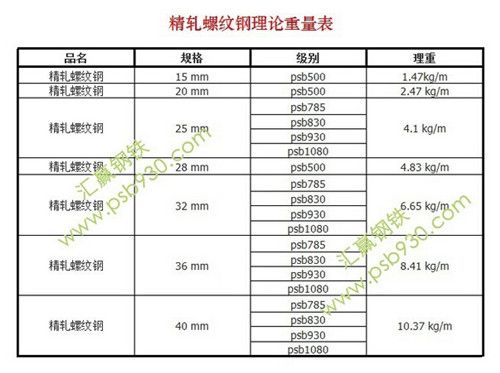 精軋螺紋鋼理論重量表,如圖: